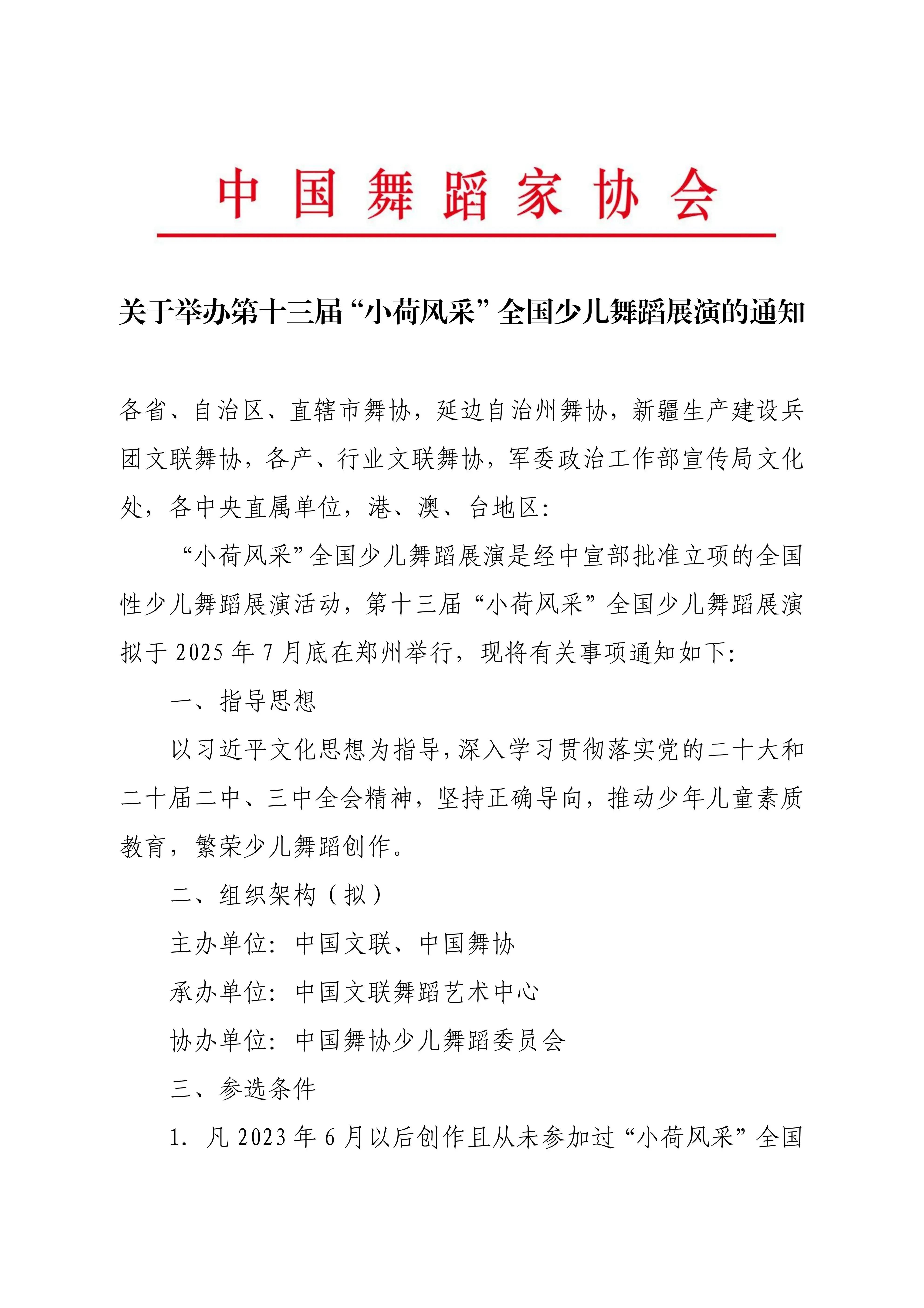 关于举办第十三届“小荷风采”全国少儿舞蹈展演的通知!