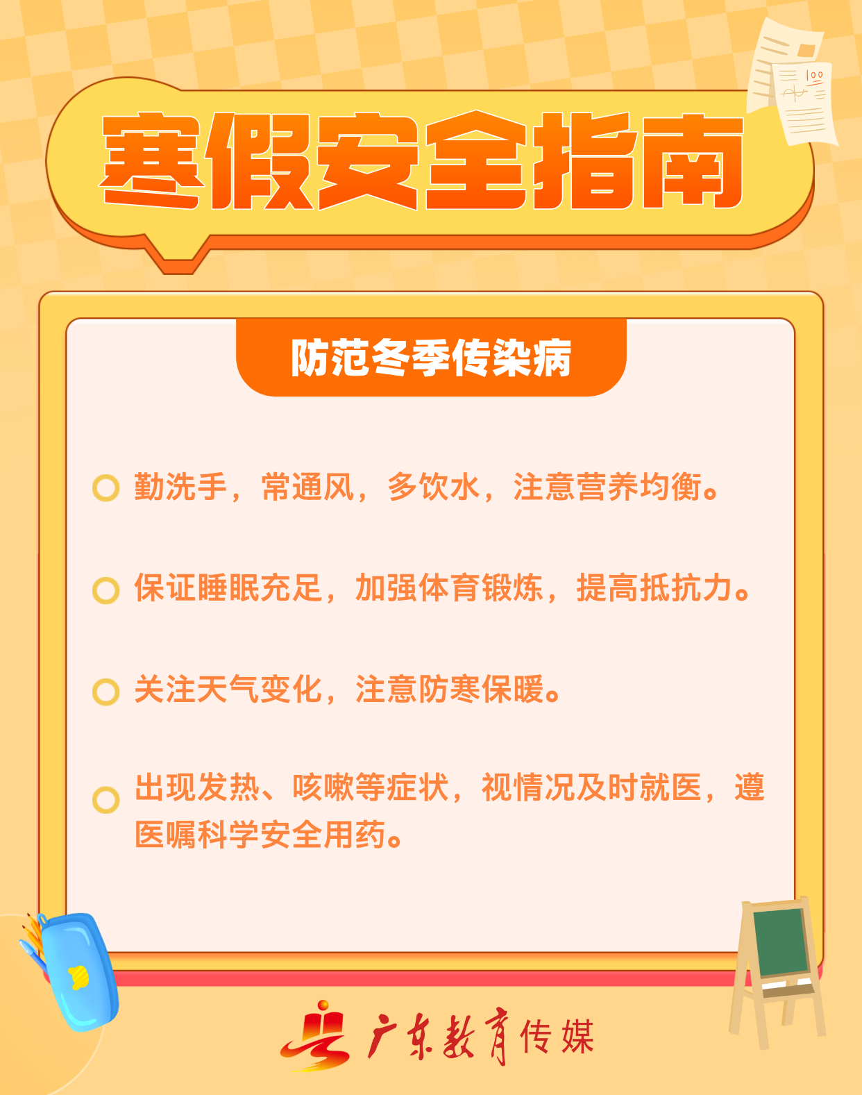岁序更迭,新春在望。转眼间,寒假即将来临。为了让孩子们度过一个安全、快乐、健康的假期,我们向您发出以下安全提示,希望家长们重视对孩子的安全教育,共同筑牢寒假安全防线,守护每一位孩子的平安成长。