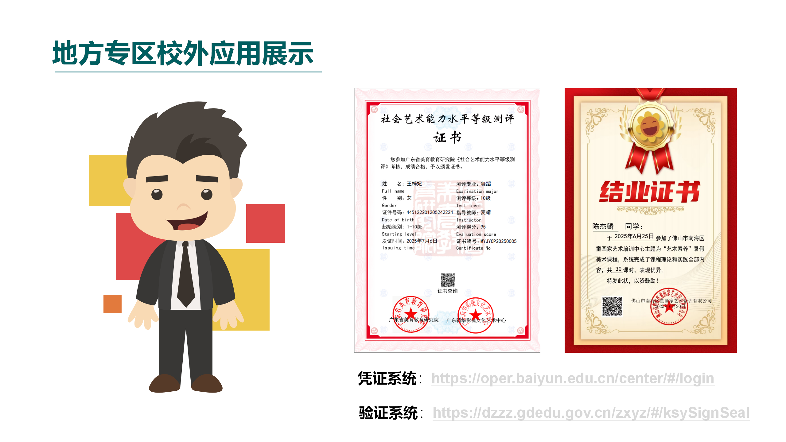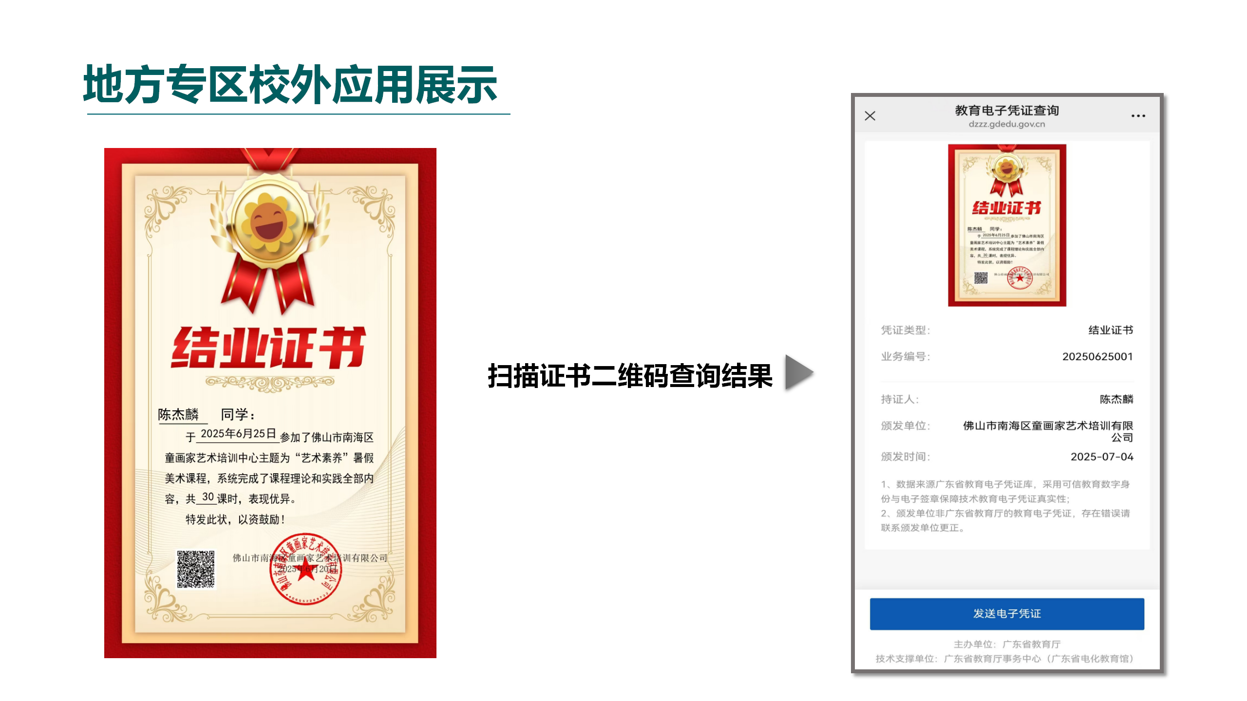 2、提升机构公信力:机构通过可信教育数字凭证服务系统发放的电子证书可以在教育部、广东省教育厅、粤省事等政府/政务平台查询和验证,增加机构证书的公信力,彰显机构专业性和规范性,提升机构在行业内的竞争力和声誉。